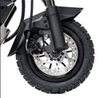 Безпека без компромісівПодвійна система гальмування — дискові гальма + електронне E-ABS — гарантує контроль навіть під час екстреного гальмування.Клас захисту IP54 дозволяє їздити під легким дощем і по вологих дорогах.